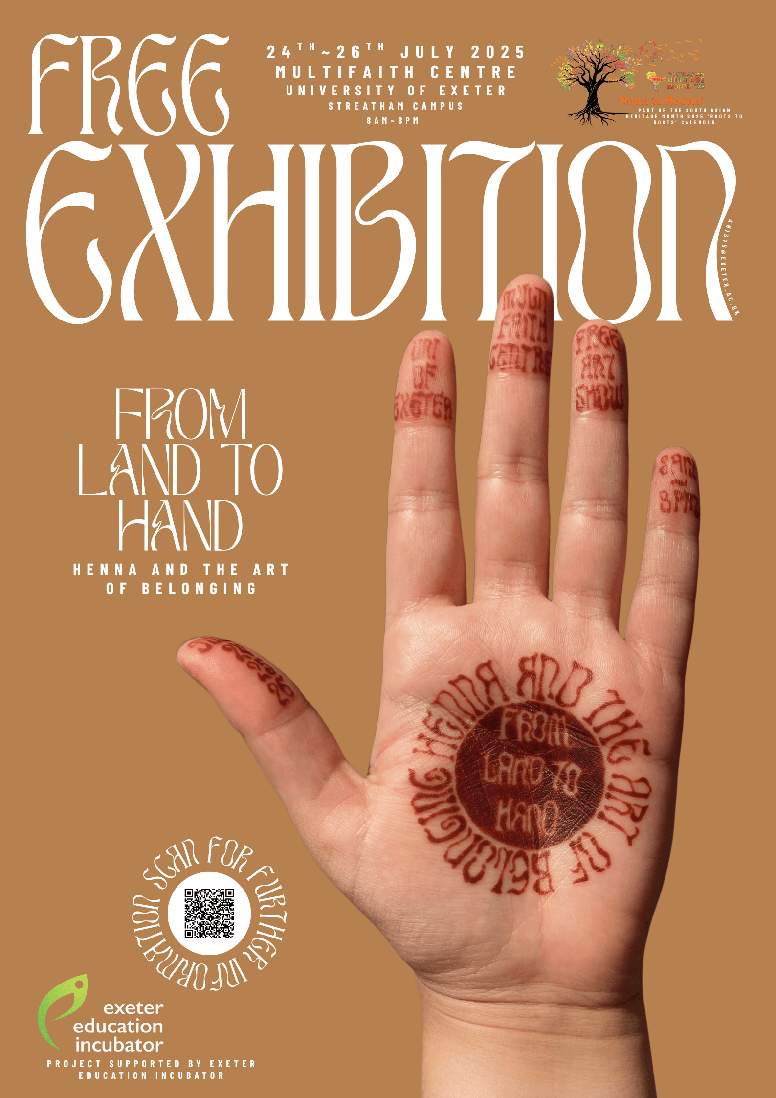 From Land to Hand: Henna and the Art of Belonging is a free art exhibition taking place at the University of Exeter this summer.