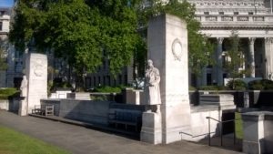 On 3rd September each year, MERCHANT NAVY DAY commemorates the start of the Second World War, declared at 1115 that day in 1939, and 8hrs 25mins later, the first loss of British, Canadian and American lives. This, amongst the passengers and crew of the liner SS Athenia, torpedoed and sunk off Ireland. 18 of those crew members are named on The Merchant Navy Memorial in Trinity Square Gardens on London’s Tower Hill EC3. Like that of its predecessor, the Mercantile Marine, in the First World War, the rôle of the Merchant Navy was to keep Britain fed, fuelled and fighting. In tribute, their Red Ensign is the only civilian organisation’s flag displayed on the Cenotaph.