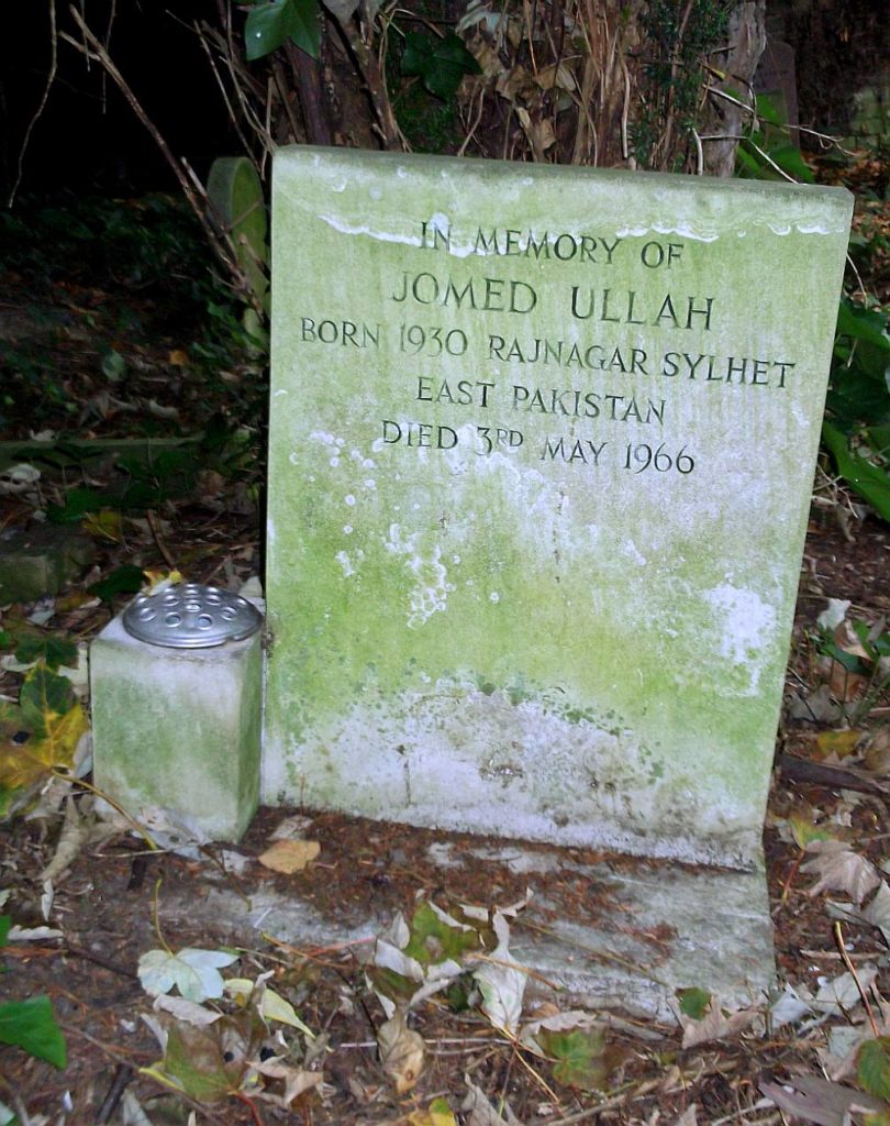 The graves are of Suna Meah and Jomed Ullah. They are also buried at the grounds. Suna Meah (also spelt Sona Meah) aged just 43, was struck by a bus on 14 April 1964 on Maid’s Causeway in Cambridge. He lived at 15b Malcolm Street. He was classed as a ‘labourer’ Pakistani national. An inquest was held on 22 April 1964.